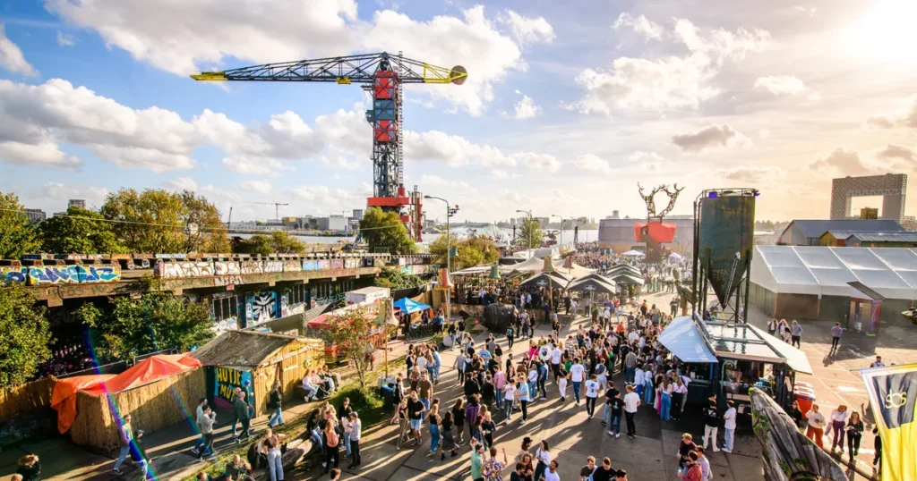 NDSM Werf. A former shipyard located along the banks of the River IJ in Amsterdam Noord. The NDSM Wharf has blossomed into an enormous cultural hotspot in recent years with a vibrant artist community and an ever-expanding variety of bars and restaurants including my favorites: Pllek and Noorderlicht.