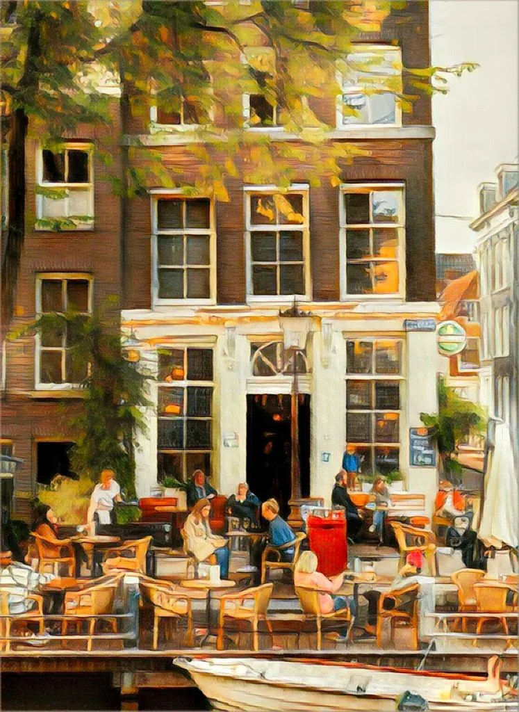 This café is a wonderful ‘brown café’ located in the heart of the Jordaan dating from the 17th century. Brown cafes are old school Dutch bars serving traditional drinks, they do not play music – although you might encounter Joost playing the ukulele. On a sunny day you can sit on the terrace outside, that has hands down one of the best canal side views in the Jordaan. The outdoor terrace has mooring for boats, so you can stop off for a coffee or beer from your boat, too!